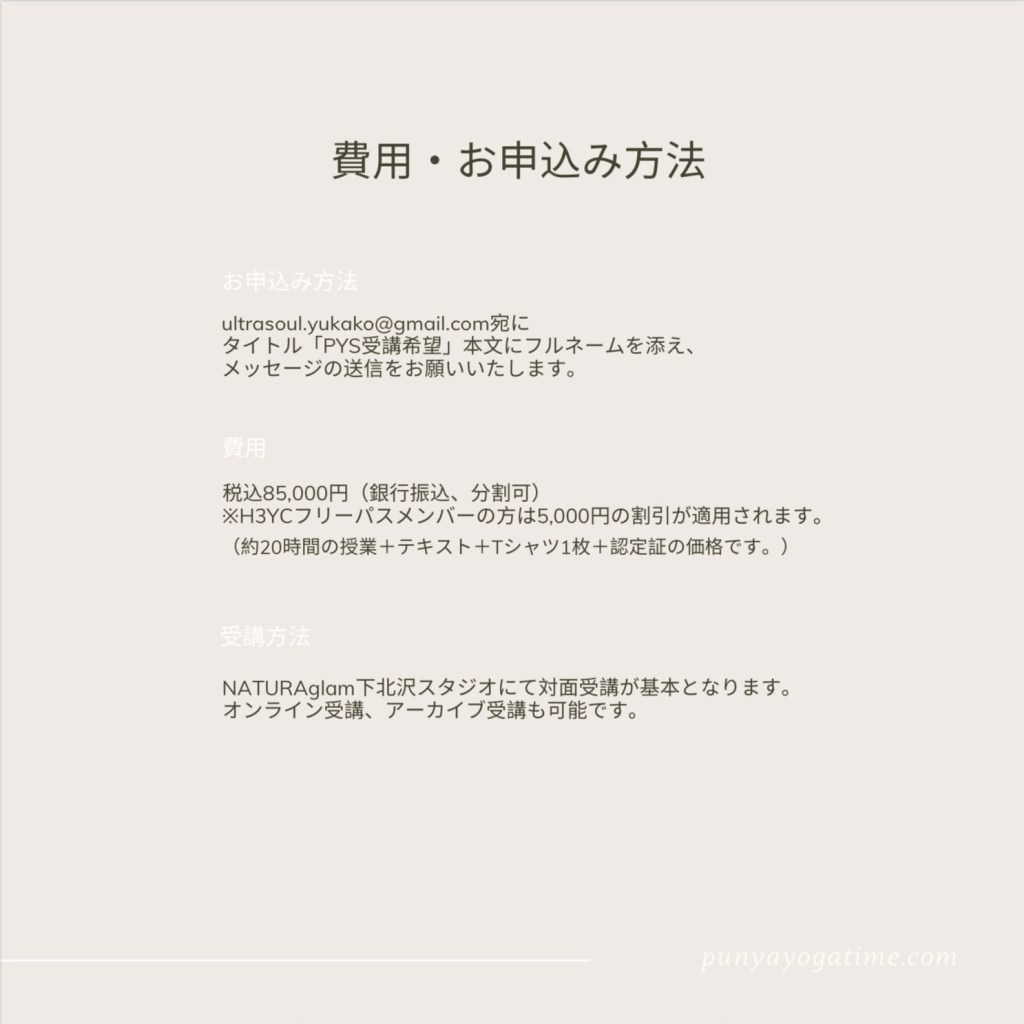 おうちヨーガインストラクター養成講座・第二期生募集のお知らせ February 1, 2023February 1, 2023by ゆかこ校長 この度、PYS(プンニャ・ヨーガスクール)ハタヨガ基礎+おうちヨーガインストラクター養成講座の開催が決定いたしました。 詳細は下記よりご覧ください。 皆様のご参加、心よりお待ち申し上げます。 puNya Yoga School 校長 佑佳子 Share this: Share on X (Opens in new window) X Share on Facebook (Opens in new window) Facebook